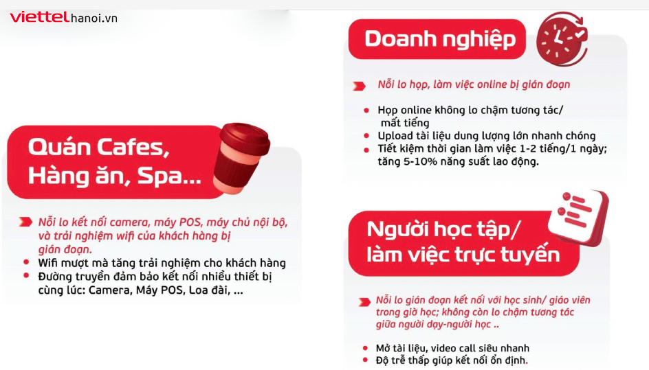Khách hàng là hộ gia đình, doanh nghiệp và tổ chức có nhu cầu sử dụng internet tốc độ cao, phục vụ đồng thời nhiều thiết bị và các ứng dụng chiếm băng thông cao như: xem phim, video 4K/8K, chơi game online, livestream bán hàng, cloud, camera AI, truyền dữ liệu dung lượng lớn,